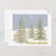 A familiar, Holiday greeting, has been digitally-edited, to create this, graphic drawing, of guilded-gold, trees, grouped together, upon a snowy, backdrop-with glowing, Symbolic, Holy Star, against a Slate-blue, sky.
