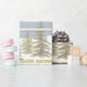 A familiar, Holiday greeting, has been digitally-edited, to create this, graphic drawing, of guilded-gold, trees, grouped together, upon a snowy, backdrop-with glowing, Symbolic, Holy Star, against a slate-blue, sky.