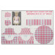 This cut and sew yourself chef set features a reversible chef's apron, oven mitt, and matching chef's hat, all sized to fit 18" dolls such as American Girl Dolls in colour coordinating shabby chic harlequin, damask, and striped patterns topped with eyelet lace trim, faux ribbons and bows. (Just add your own ribbon ties at the neck and waist.) Pattern by Daydream Doll Boutique, used commercially with permission. Website address for free illustrated sewing instructions also included in the cut and sew pattern, which is sized to be purchased as 1 set on a fat quarter or 4 sets on a yard.