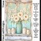 A bouquet of creamy peonies and pale pink blossoms overflows from a tall aqua blue vintage jug, set against a distressed wooden backdrop in weathered white and faded turquoise. The thick brushstrokes and palette knife textures give the flowers a sculpted, almost three dimensional appearance, while the rustic background evokes a cottage farmhouse aesthetic. Perfect for romantic or country themed crafts. Artwork similar to a palette knife oil painting in a shabby chic farmhouse style…..COLOR COMBINATIONS: Cream, blush pink, golden ochre, aqua, white, turquoise, and brown…..PERFECT FOR: Shabby chic decoupage, cottagecore gift wrap, rustic journalling, home décor crafts, and upcycled furniture panels....…… 🖤 NOTE 1. This design is available in three options: Left, Right and both You can find them in the Collection shown below. If they don’t appear there, try searching for their unique identifiers: DV5L for the Left design, DV5R for the Right version and DV5B for the two together ….🖤 NOTE 2. I personally find that 18lb tissue paper is ideal for decoupage. The 10lb paper is much thinner, so it dries faster, which can lead to more wrinkles. The 18lb paper is a bit thicker, giving you more time to work with it and helping to reduce wrinkles..….🖤 NOTE 3. All items with this particular design share my unique identifying “Letter/s Number/s” label in the title for easy searching.