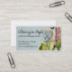 Cute French shabby chic style business card with pearls border cooking classes, personal chef, caterer or catering, or other gourmet food or culinary business. Eiffel tower, butterfly, pears, vintage flowers and fork and knife heart cutout on a light blue textured background.