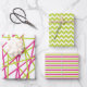 Shabby Chic Pink & Green Stripes & Chevrons Matching Patterns Wrapping Paper Sheets