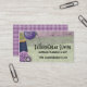 Shabby chic fabric background on this sewing business card; buttons, safety pin & sewing pins, spool of thread and a crocheted flower for a fun business card or "made with love" large gift tag or hang tag for your handmade wearables and gifts.