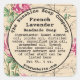 A product label for soaps, cosmetics, and bath and body care products featuring a shabby chic vintage design.