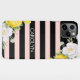 Contemporary pretty white and yellow roses floral design on a black and blush pink coloured stripes pattern. With room to customise or personalise with a name, monogram, or initials of your choice. Beautiful, elegant, and stylish cover for the trend-savvy and art-loving hip trendsetter, artsy motif lover who wants to protect their phone from dust and dirt, wear and tear. This design is available in Apple iPhone 6, 7, and 8 Plus, 10 or X, XR, XS, 11, 12, 13 Mini, 14, 15 Plus, and Pro Max cellphone cases. Show off your style, look fashionable, and feel stylish with a unique design on a mobile device accessory of your choice.