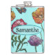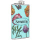 Shabby Poppy Red Purple on Aqua Customizable Name Hip Flask