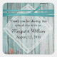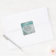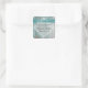 Country chic wedding sticker, with graphics of a thin white lacy handkerchief and a chic turquoise ribbon that decorates the turquoise painted weathered wood look background. Personalise all the text for your special day. Matching products available. Great as little gift / favour labels for your guests.