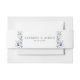 The wedding invitation belly band in the image features a beautiful floral design with blue and ivory flowers, complemented by green foliage on a white background. This belly band adds a stylish and cohesive touch to wedding invitations, making it an appealing choice for couples looking to enhance their wedding stationery with a blend of elegance and functionality.