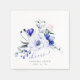 The shade of royal blue ivory floral wedding napkins feature a beautiful bouquet of blue roses and ivory flowers, complemented by grayish-blue leaves and stems.
