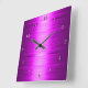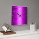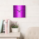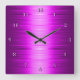 This shiny square clock in shades of Red Raspberry and Amethyst will brighten the wall of any room it is displayed in.