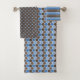 SHADES OF BLUE & BROWN HEARTS HONEYCOMB STRIPES BATH TOWEL SET