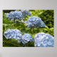 Beautiful blue hydrangeas dancing amongst their leafy green foliage. A great floral poster or print for the home or office.
