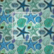 Shades Of Blue Seashells And Starfish Pattern Fabric