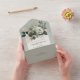 This enchanting All in One wedding invitation beautifully captures the essence of nature with its stunning floral design in shades of green on a serene sage green background. This invitation suite is the perfect choice for couples seeking an elegant and romantic touch to their special day. The All-in-One wedding invitations are both beautiful and practical by combining the wedding invitation with an easy to remove perforated RSVP postcard. They are also quick and easy to prepare for mailing. Simply address the invitation, fold the back flap and seal with the included clear stickers. Once your guests receive the pre-addressed invitation they simply tear off the perforated RSVP card and drop it in the mail. The addition of the QR code allows your guests to easily access your wedding website for information including reception details and dinner choices!