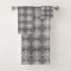 Shades of Grey and White Lace Bath Towel Set. A contemporary modern design with a vintage feel. A stylish neutral set to complement your bathroom decor. Add a name, or monogram, or change the background colour to customise. Matching Bath Mat and accessories available.
