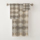 Shades of Grey, Beige, and White Lace Bath Towel Set. A contemporary modern design with a vintage feel. A stylish neutral set to complement your bathroom decor. Add a name, monogram, or change the background colour to customise. Matching Bath Mat and accessories available.