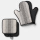 Shades of Grey Black White Chequered Oven Mitt & Pot Holder Set