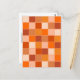 Home decor and gift products designed with warm, earthy patterned shades of orange squares.