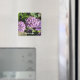 Beautiful purple hydrangea plants with leafy green foliage accent this lovely garden magnet.