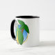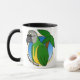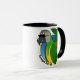 This bright and colourful parrot design has a Senegal Parrot cartoon wearing a pair of sunglasses as he grins from inside a blue circle with a tropical green palm tree. Fun Senegal Parrot mug for bird lovers. Other species specific cartoons are available!