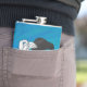 The flask itself is fine. It’s a cheap flask, obviously bought in bulk, however am prepared to overlook that. Given that it is a personalized item, I would have liked to have seen gift boxing instead of the generic packaging. Terrible printing, and/or quality. It’s a cheap, tacky vinyl. It is not cut straight and is also applied in a way that it is overhanging the bottom, causing the glue to catch on items and it will eventually roll and tear, damaging the wrap.