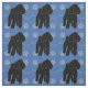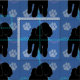 This fun, cute black shadow silhouette style Poodle stands with a smile ,against a blue background with paw prints and tracks in grey, blue and pink.. Design by Diane Blackman. The same design is available with other fun dog images.