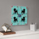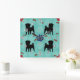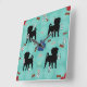 A silhouette Pug with a scattering of bones and paw tracks. This design is intended to tile seamlessly.