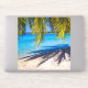 Shadows of a palm tree on the beach of Takapoto, an island in the Tuamotu atoll in French Polynesia.