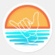 This sticker features the shaka hand sign over a stylised ocean sunset.
