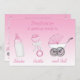 Personalised girls' baby shower invitations. Shake, Rattle and Roll stylish custom invites for girl baby showers. Beautiful pink and white colours personalised baby shower invitations with a modern and trendy Shake, Rattle and Roll theme with a 1950's vintage retro look / feel with the classic carriage, and timeless babies rattle and bottle. Elegant, fashionable, pink to white gradient background with cute baby bottles, glamourous baby rattles with bows, and chic, girly pink carriage / prams / strollers. Classy, classic baby shower / baby sprinkle / couples shower invites for girls. These adorable, pretty, fun, vibrant shake, rattle and roll themed showers invites are printed / decorated on both sides / have two sided printing - there are more images on the back with personlizable / personalisable text for your shower details. One of the hottest baby shower trends for 2014. Please note: All invitations on Zazzle have flat printed images. If you need any assistance customising your product please contact me through my store and I will be happy to help. The text is fully customisable / customisable to meet your needs. Original artwork©delightful-doodles.com and Jean Gordon at craftsuprint.