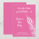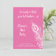 A large peacock feather in white decorates this Hens Party Invitation on a pink background with the cute saying, Get Ready to Shake your Tail Feathers! making it perfect for a night on the town dancing to celebrate the bride.