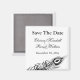 Light wispy peacock feathers adorn this invitation in a chic new way. This magnet is part the full wedding collection, Shake your Tail Feathers, and is available in several different colours.