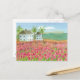 A pretty postcard decorated with a watercolor painting of pink tulips fields and a Shaker style house in a quiet country setting. A nice postcard to use as a moving announcement to let friends, family, and customers know your new location.