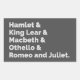 'Hamlet and King Lear and Macbeth and Othello and Romeo and Juliet' Shakespeare plays on a grey background. Victorian literature.