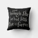 Fun Shakespeare quote throw pillow says And though she be but little, she is fierce. From a Midsummer Night's Dream.