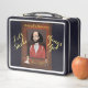 This is a standard metal lunchbox that appears to work just fine. We designed this box ourselves with an uploaded photo and custom text on the front and back. It looks absolutely beautiful except the front of the lunchbox is not centered like it shows in the photo. The print borders don't align with the inset flat part of the box where the preview photo online showed it perfectly centered in there. The back looks nice and centered though.