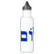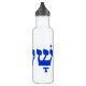 Shalom, Hebrew for "peace", in blue on a white water bottle.