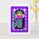 This fabulous feline angel in the night sky helping spell Shalom with her terrific tail was originally created using Tombow pens and gold embossing powder, which is still somewhat visible. Interior card is bordered and coordinated with a date area for your writing pleasure. Shalom! karyn
