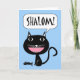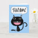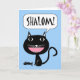 Shalom! Hello Card in Hebrew, Black Cat with Fish