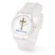 I only have one complaint. I ordered the watch with clear case and strap, and what was sent was white case and strap. I'm going to keep it because 1) it looks very nice in white, and 2) it would take too long to get a replacement made and sent in time for my occasion. Aside from the mix up with the color, the watch does look very good in white. The purple dial is actually sparkly which did not show in the online images. That was a nice surprise. If you like Swatch watches this is very similar to those. It's 33.6mm in diameter, 10.5mm thick, and 40.6mm lug to lug. Stainless steel case back says 3ATM/30m WR, so no swimming or showering or submerging this one. If you like Woodstock, this is a great choice.