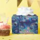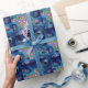 A multicolored (pink, green, blue, yellow), looping fractal image on a dark blue background. An interpretation of how the night sky may appear to a Siberian shaman while in a trance communicating with the spirits.