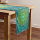 Featuring a modern blend of Tantric and Lotus mandala designs in green and turquoise, this 100% cotton runner symbolises nature and air, raising awareness of climate change. Handmade in the USA with vibrant edge-to-edge printing, it's a perfect touch of elegance and tradition for any occasion.