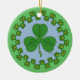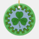 According to tradition, Saint Patrick used the three-leaf clover to illustrate the Christian Trinity. Although the authenticity of this tradition is in question, the shamrock has become a symbol of Ireland. This design combines the shamrock with a circle of Celtic-style knotwork.