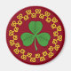 According to tradition, Saint Patrick used the three-leaf clover to illustrate the Christian Trinity. Although the authenticity of this tradition is in question, the shamrock has become a symbol of Ireland. This design combines the green shamrock with a circle of Celtic-style knotwork in yellow, both on a red background.