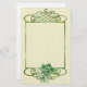 Lovely stationery with Irish theme features a pretty bouquet of Shamrocks tied with matching ribbon on lightly textured cream background with gracefully swirled green border.