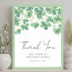 This elegant thank you sign features green watercolor shamrocks or clovers at the top, perfect for a St. Patrick's Day themed bridal shower. "Lucky In Love" is displayed in handwritten script, adding a sweet touch, with the bride's name and shower date in a classic serif font at the bottom. You can customise the font and background colours to perfectly match your theme. This sign is ideal for expressing appreciation to your guests and making your celebration extra special.