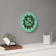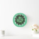 Shamrock or clover (shaded) in centre of clock, with textured dark green centre background, and green outer background. With white numbers. Outer background and numbers are subject to colour change by you.