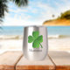 Shamrock Clover Design Thermal Wine Tumbler with customisable text.