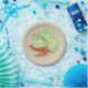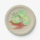 This St. Patrick’s Day paper plate features my own pastel artwork depicting a green three leaf shamrock clover with rust coloured accents along with easy to customise text in a dark green hue.