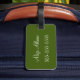 This luggage tag features a dark green and white damask pattern with shamrocks and customisable text to personalise it.